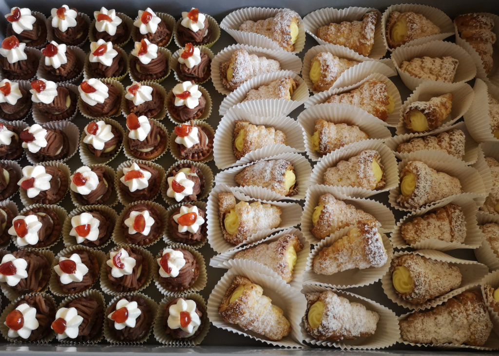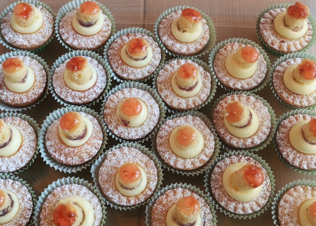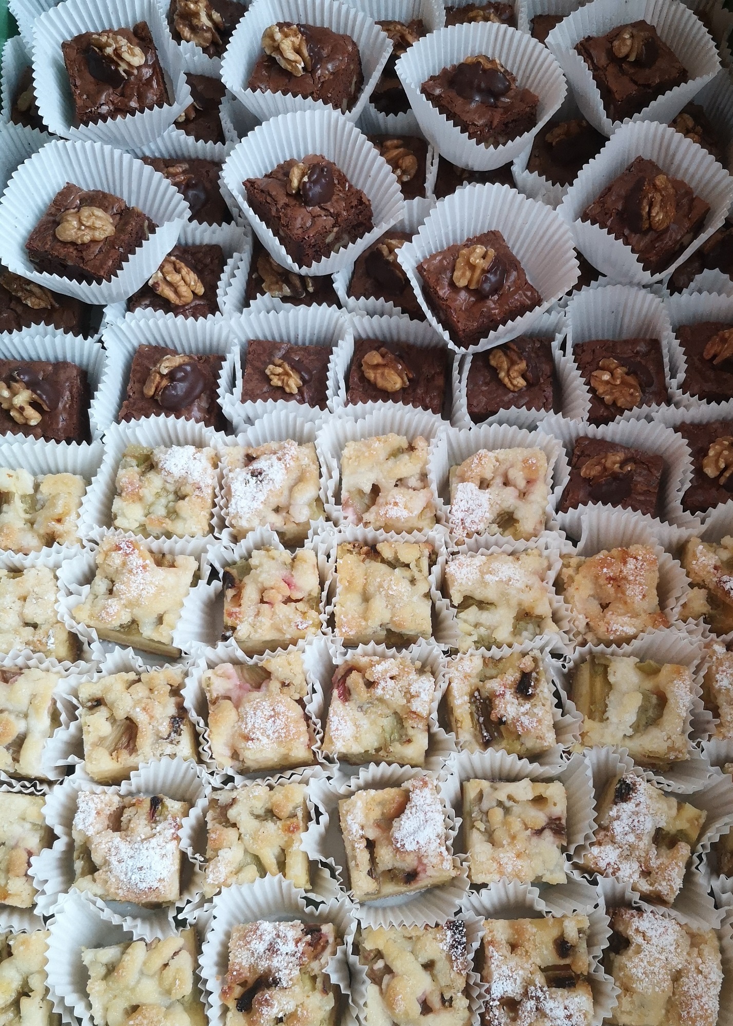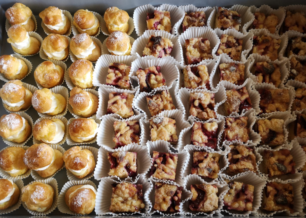 ZapfentörtchenBananen Capcake und SchokopralinenrouladeBrownies und Rhabarberstreusel-SchnitteVanille CornetOfenküchlein und ZwetschgenstreuselschnittenPannacotta und SchokoladencremeVermicellestörtchen und Vanillecornets